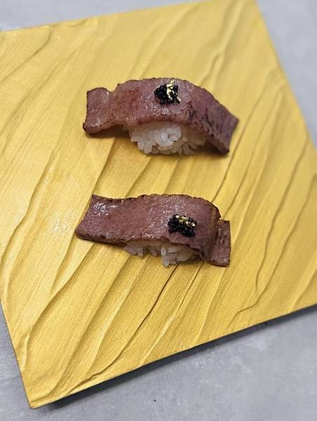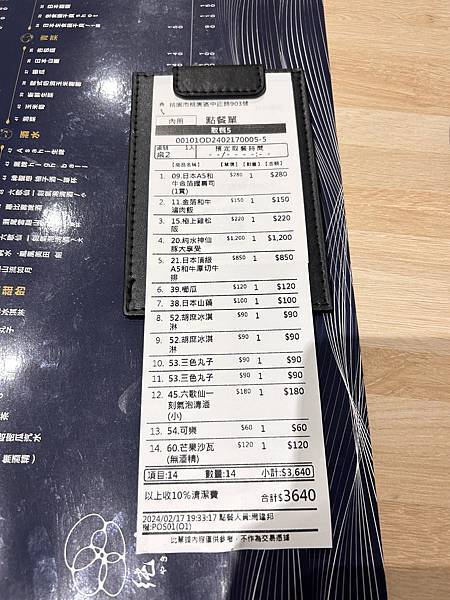 我們總共點10樣:包含日本A5和牛金箔握壽司、金箔和牛滷肉飯、極上雞松坂、純水神仙豚大享受、日本頂級A5和牛厚切牛排、櫛瓜、山藥、胡麻冰淇淋、三色丸子以及六歌仙氣泡清酒等。
