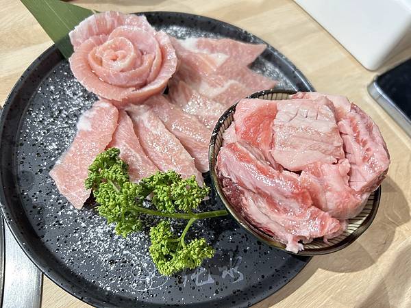 這次點的餐食每樣都沒有踩雷,第一愛A5和牛厚切牛排,純水燒肉A5和牛在燒烤過程中,脂肪逐漸融化,與肉的每一口融為一體,帶來了層次豐富的滋味。當和牛在烤架上翻轉,其表面的脂肪開始熔化,滴入火中,呈現令人垂涎的香氣,整個空間都被這種誘人的味道所充滿。