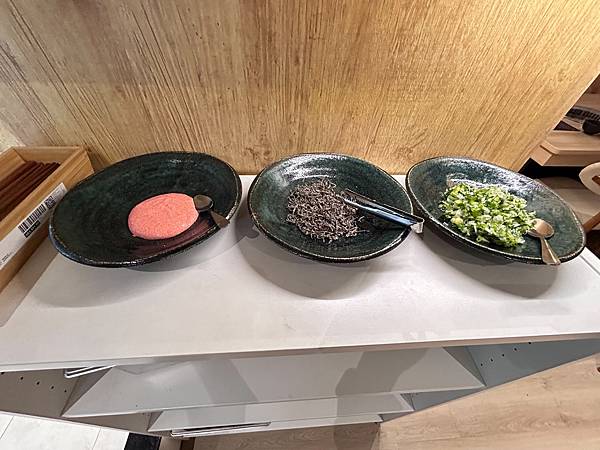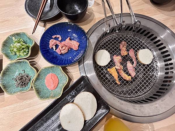 提供多種特製醬料搭配,包括:松露醬、燒肉醬、蔥鹽、明太子美乃滋、昆布鹽,明太子美乃滋夾搭配櫛瓜和山藥,松露配肉類,蔥鹽則去油解膩,我最喜歡松露醬,松露醬通常由細碎的松露、橄欖油、鹽製成,吃起來有堅果和木質香氣。瞬間提升肉類層次感。