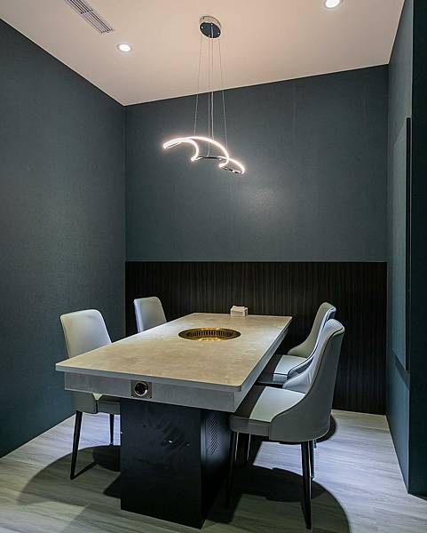 以灰黑色系為主,裝潢簡約典雅,大門簡約奢華感,一樓為四人座的桌子,二樓有六人 、 八人 、 十二人包廂,每個人低消1500元,就可以選擇二樓包廂用餐。一樓餐廳牆上可以看到和牛進口認證等資訊,正宗日本進口A5和牛。但其價格與外面相比相較實惠許多。