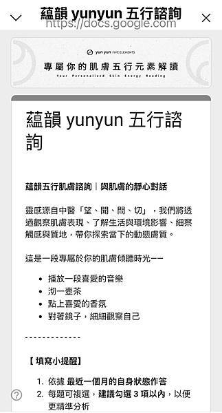 每次做完杏仁酸換膚,皮膚總會特別乾,甚至出現乾燥粗糙,這時候保濕工作真的不能馬虎。不久前接觸到這款 蘊韻五行精華液-潤·賦,一開始是因為它主打熟齡肌與缺水肌的修護,但真正吸引我的是:購買前會先根據問卷推薦最適合的保養方式,這在市面上蠻少見。