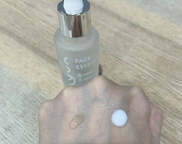 手掌左邊是潤.賦/右邊是我現在精華乳