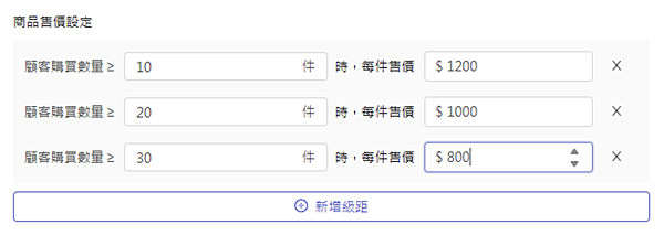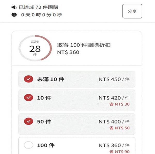 我覺得吸引人的地方是,消費者不用管跟你團購的人是誰、不能自己找人。對於賣家來說,級距設定可以刺激消費意願!