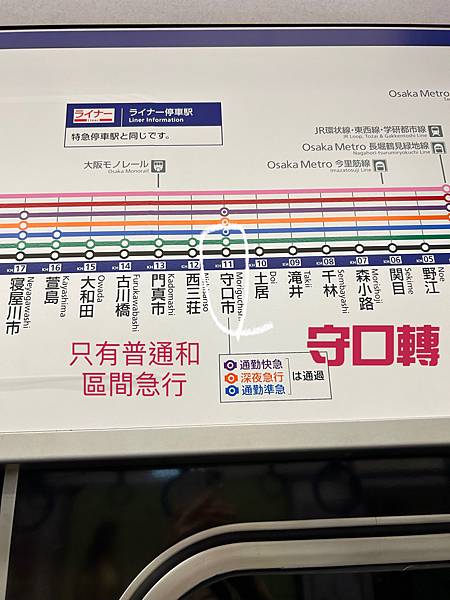只有普通跟區間直達門真,大部分會遇到要在守口轉